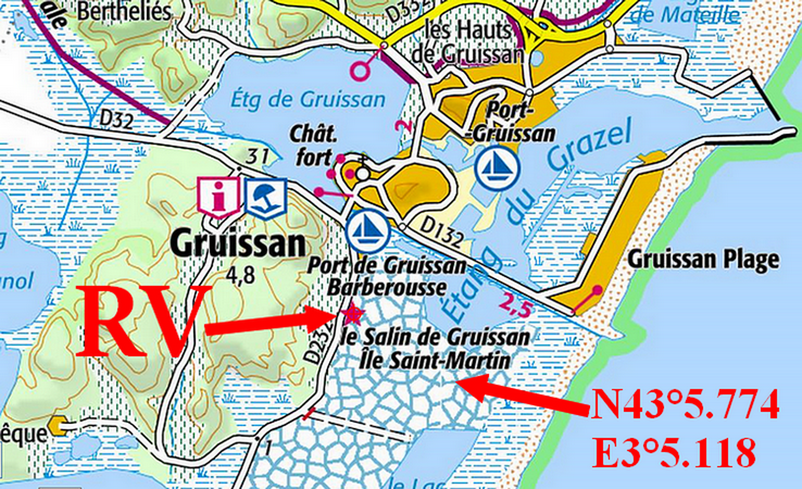 Pour demain, malgré une météo peu encourageante nous allons essayer de fuir la pluie en nous sauvant dans l’Aude, à Gruissan.